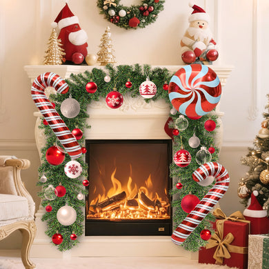 Christmas Garland, Christmas Garlands for Fireplace Stairs, Christmas Wreath with Red Ball for Fireplace, Stair, Front Door, Xmas Tree Decor