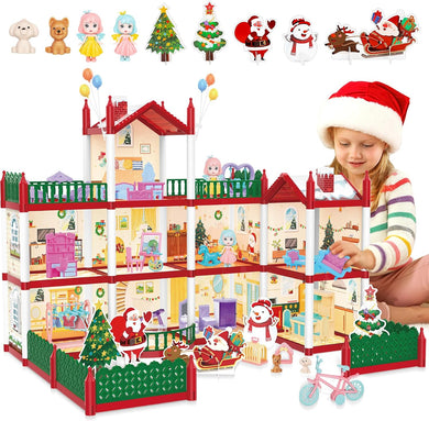 Christmas Doll House Playset, Dream House Pretend Doll House with Accessories Dolls House Garden Princess HouseBirthday Gifts (Two Floors)