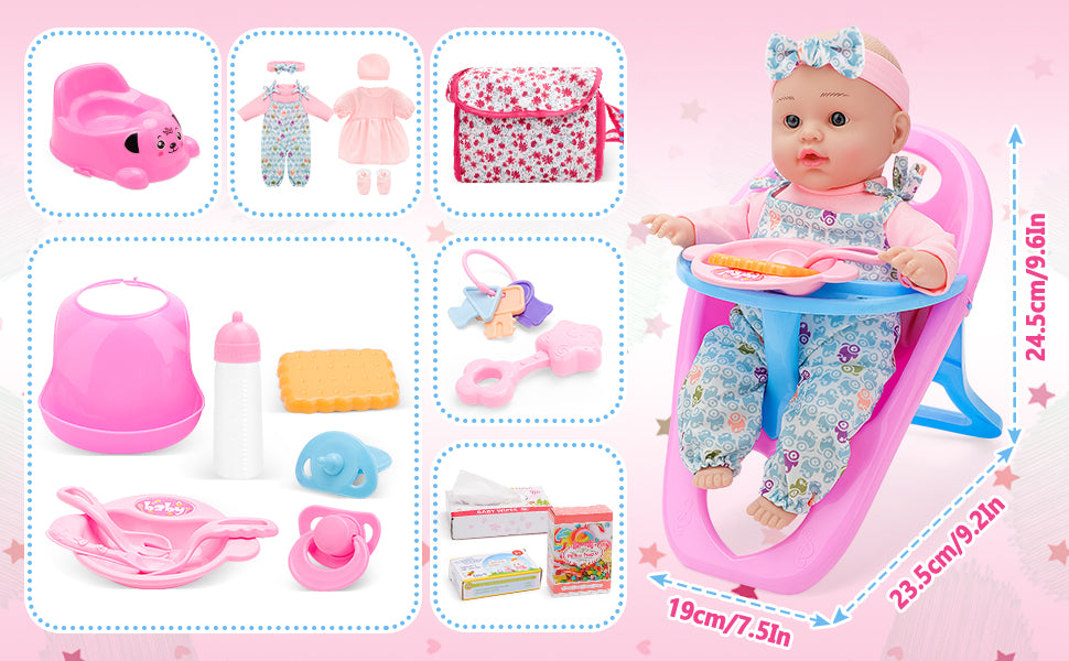 PERFECT GIFT IDEA: Complete with a baby doll, feeding and changing accessories, and more, this set makes a fantastic gift for birthdays or Christmas. Designed for children aged 3 and up. Note: Items are not intended to be sat on.