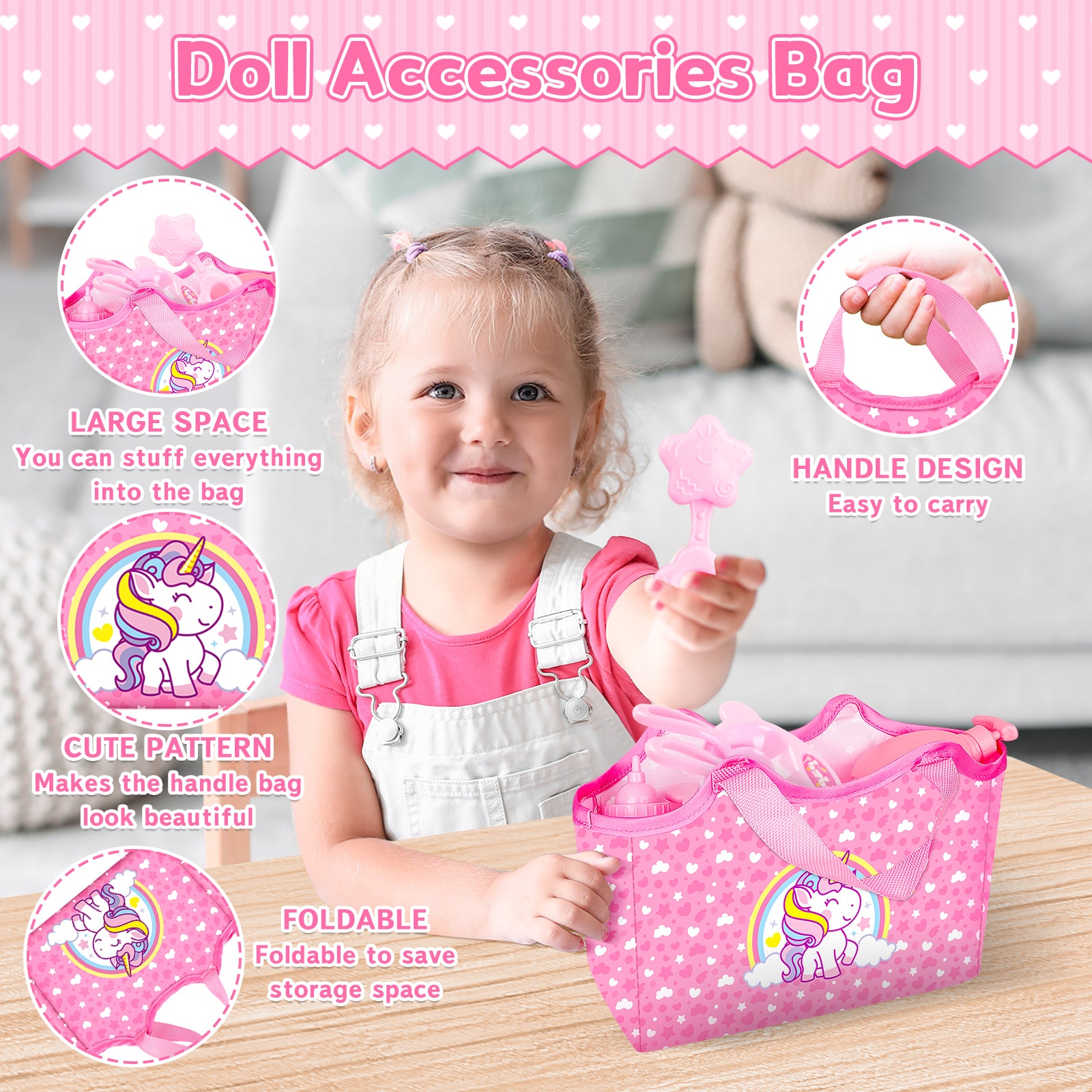 Encourage imaginative play with our baby doll accessories set that allows kids to engage in various caregiving activities like changing clothes, feeding the doll in the bassinet, and playing with toys. Promote developmental skills and social interaction through role-playing as a caregiver.