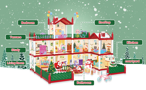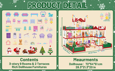 - ¡¾Exquisite and Unique Design¡¿: The dollhouse features various interactive play options such as movable furniture and christmas cartoon accessories, providing hours of fun for you and your family. Our doll house features a unique design with details that make it look like a real house. The doll house is designed with children in mind and is very easy to assemble.