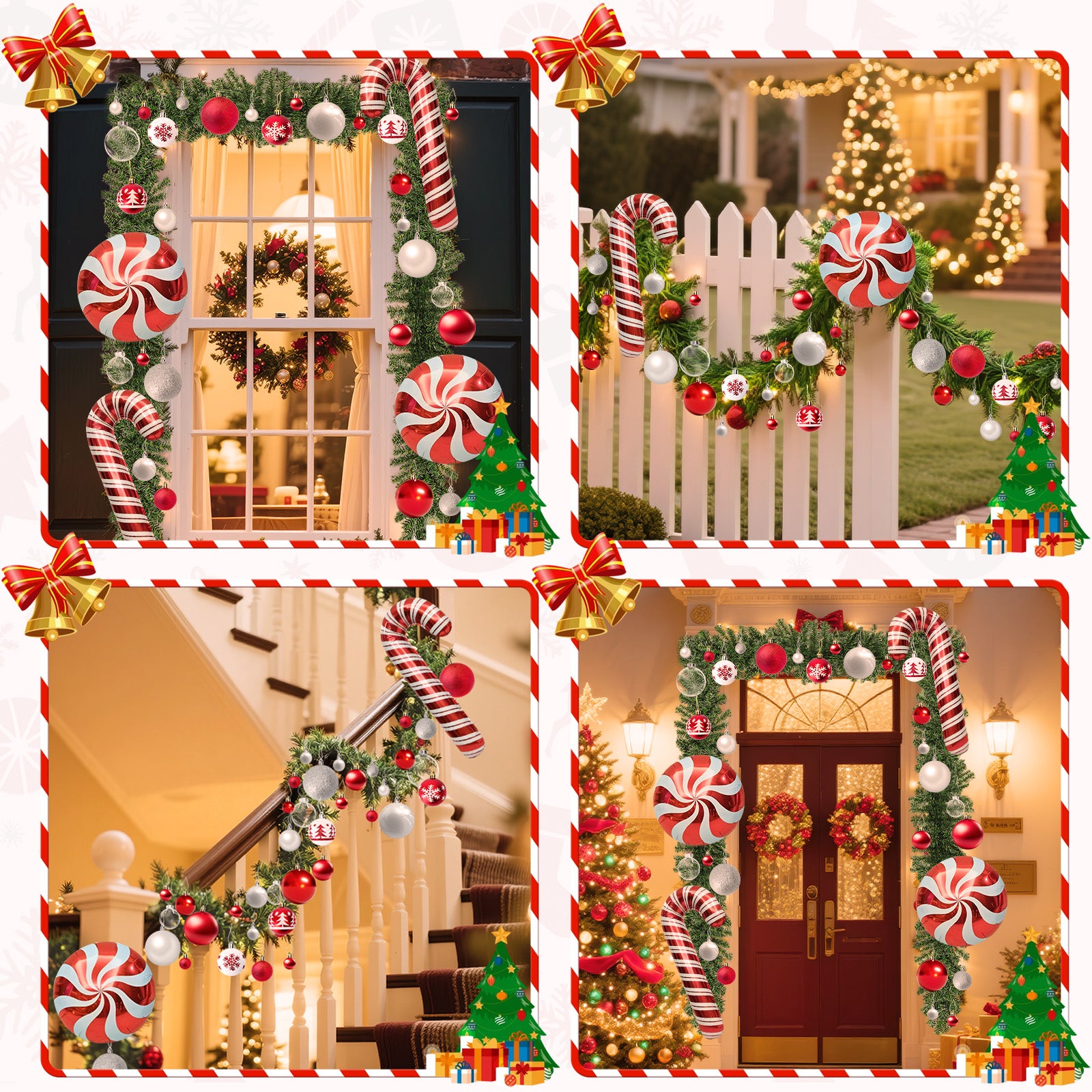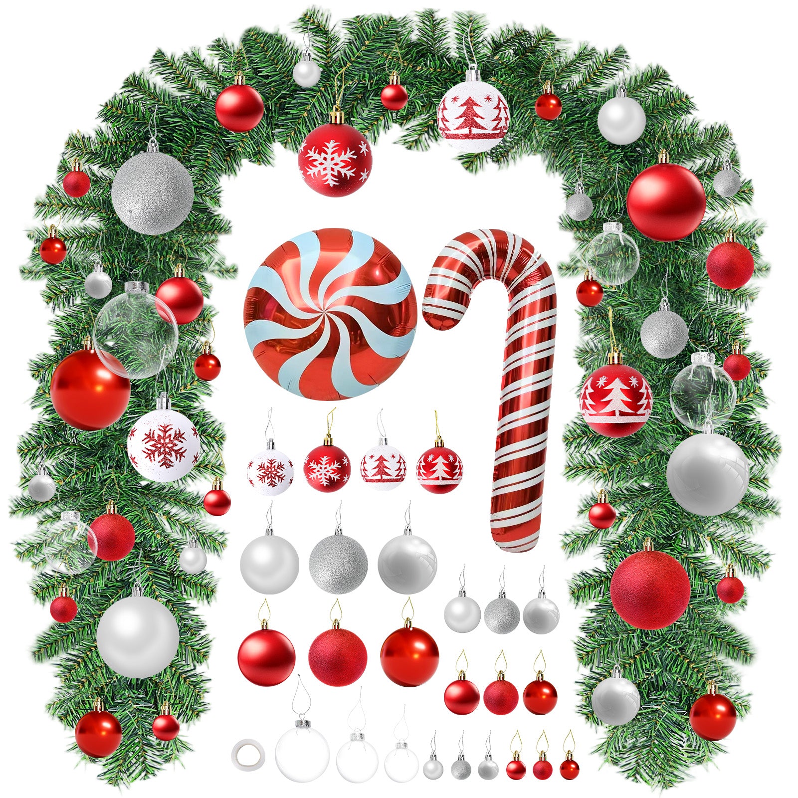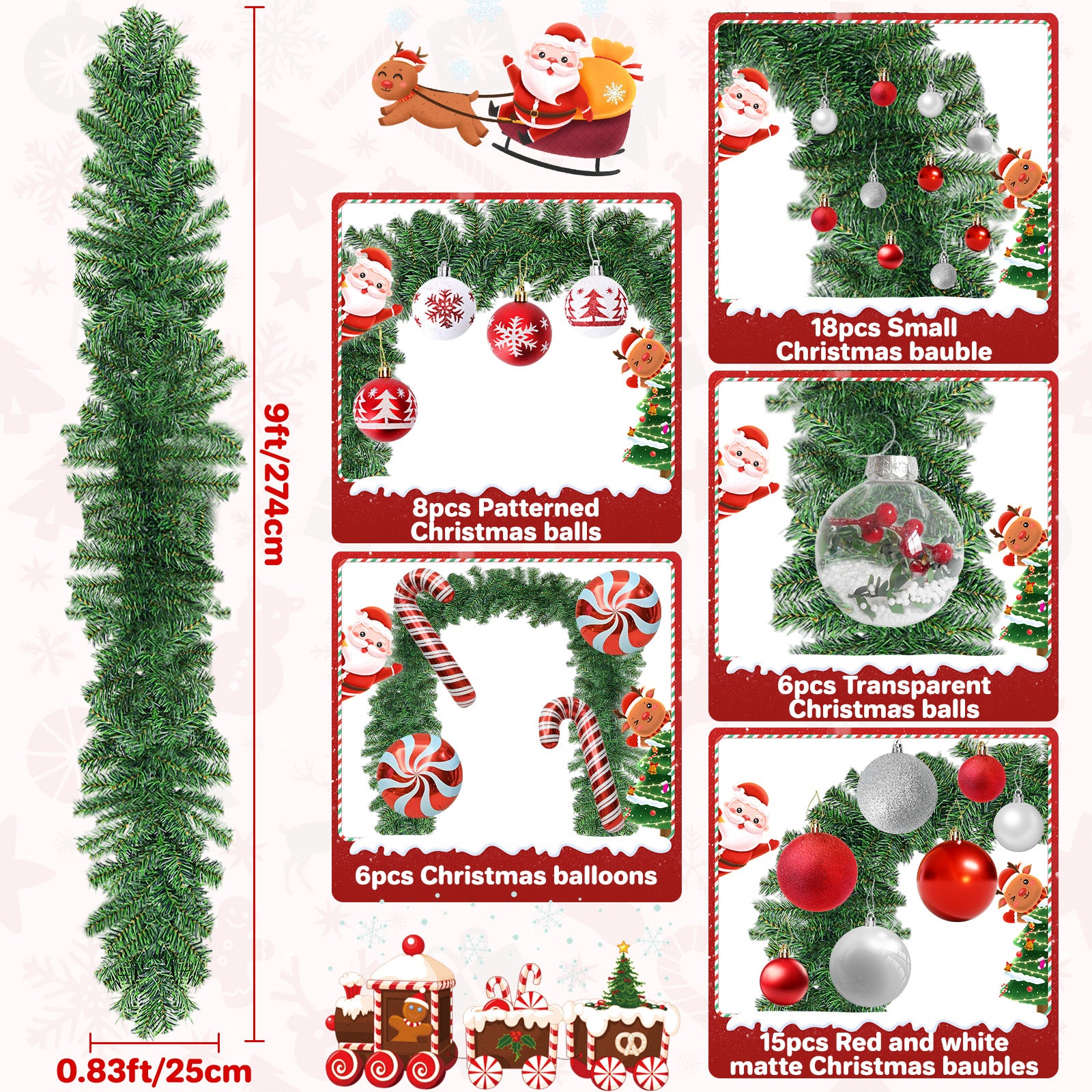 Unique Design: This garland is made from a blend of vibrant green PE and traditional PVC, incorporating festive elements like thicker branches, decorative balls, and balloons. The resulting three-dimensional effect instantly adds a festive touch to any doorway, stair railing, or mantelpiece.