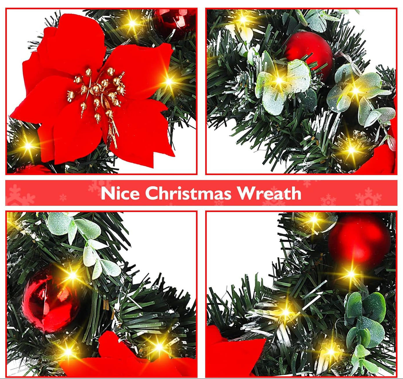 Our artificial Christmas wreath is made from environmentally friendly materials, and the woven wreath retains its shape and resists damage or fading.