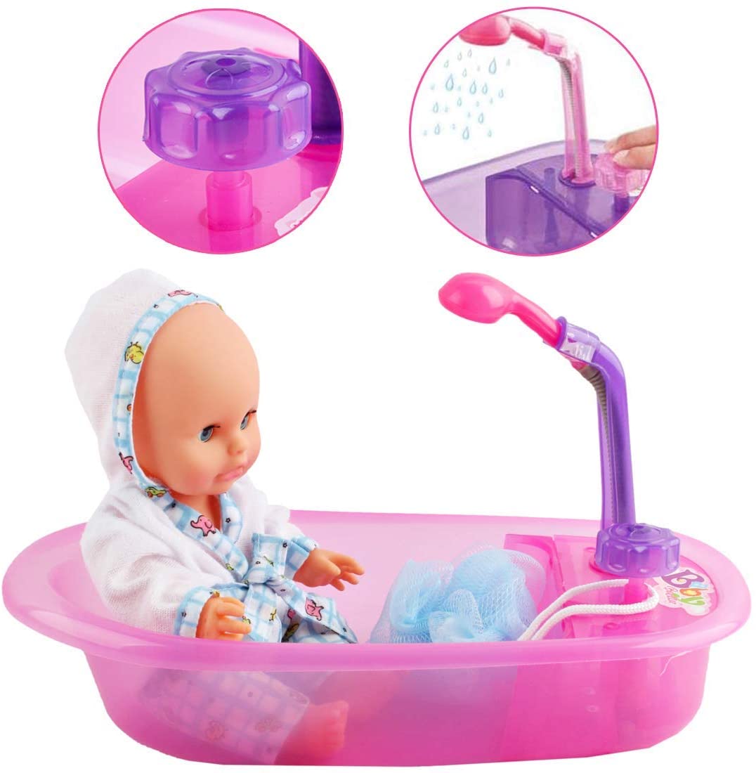 - BATH TIME FUN: Great play set that your little one will love! A variety of accessories, a 13¡± baby doll and bath tub included ¨C everything your child will need is in this one play set.
