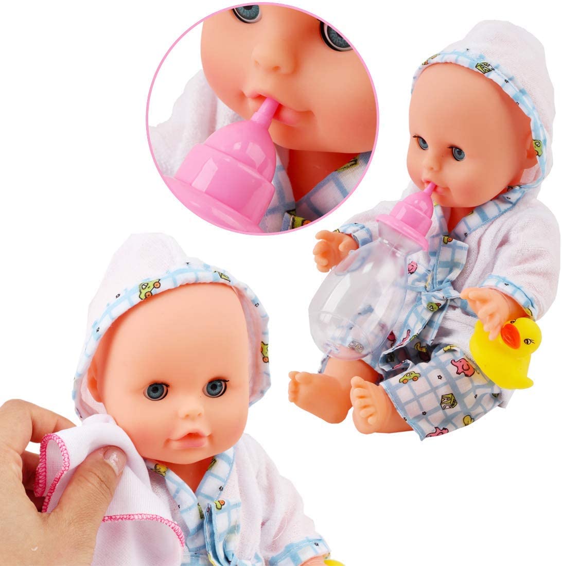 - FEATURES & FUNCTIONS: This fantastic play set not only includes a baby doll but it also includes a variety of bath time accessories and even removable clothes! Your child is able to change their baby doll when they have dried off. There is even a real water faucet feature that allows your child to fill the small scale bath giving them a realistic experience!