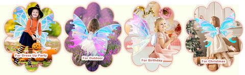 - 🎉【Suitable for themed parties & Halloween】Let your imagination run wild as these fascinating fairy wings blend harmoniously at a variety of events! Whether for adorable gatherings like magical princess parties、Halloween cosplay costumes 、animated games fancy dress, elegant dances Cosplay extravaganzas birthday parties, school parties, or bubbly Christmas festivities; Your little ones will undeniably shine among every audience!