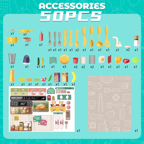¡¾HIGHLY EDUCATIONAL TOY¡¿- Not only is your child able to create fun with this play set, but they are also able to build on their hand-eye coordination creativity and imagination. This kitchen set will teach your children how to use kitchen utensils correctly and safely whilst having lots of fun. This kitchen playset is not only entertaining but also helps develop children's cognitive and social skills. It also encourages imaginative play and creativity.