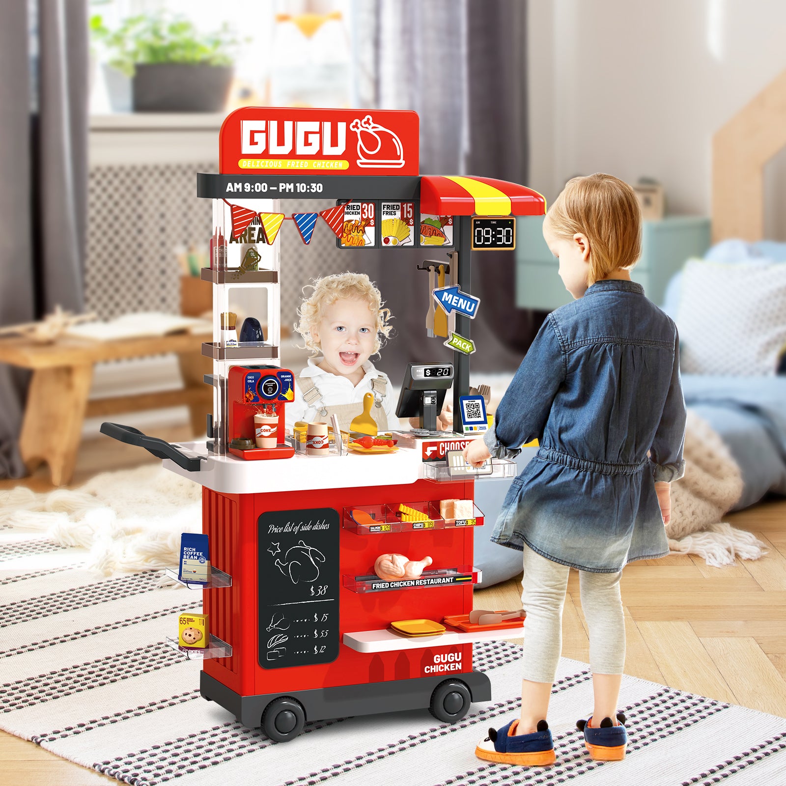 Kids Play Kitchen Fried Chicken Shop Pretend Cooking Food Truck with Lights & Sounds Role Play Toy Set for Boys & Girls Age 3-6 Birthday & Christmas Gift Idea
