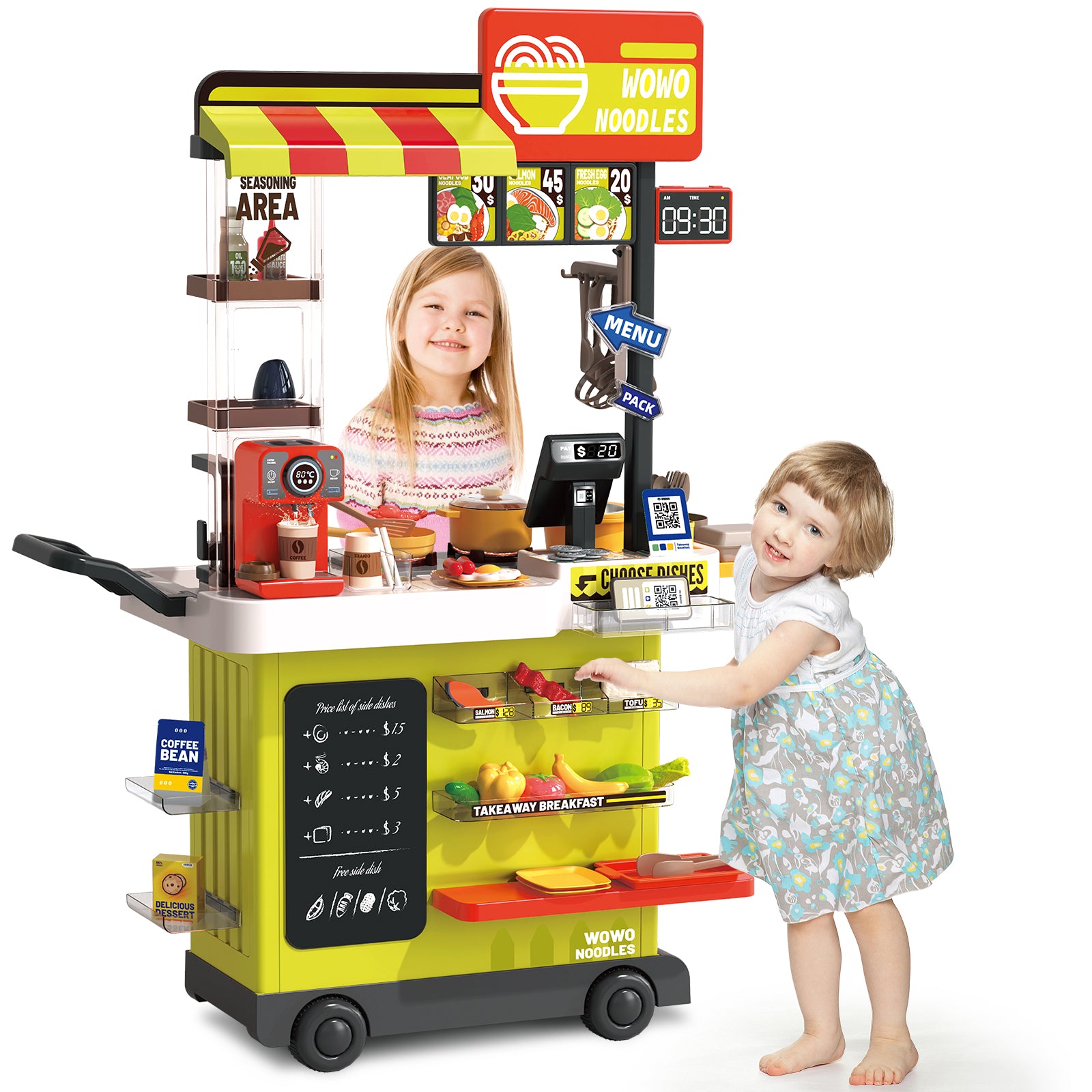 Portable Food Truck Design: Equipped with wheels and shelves, allowing kids to easily move and set up their play shop anywhere.