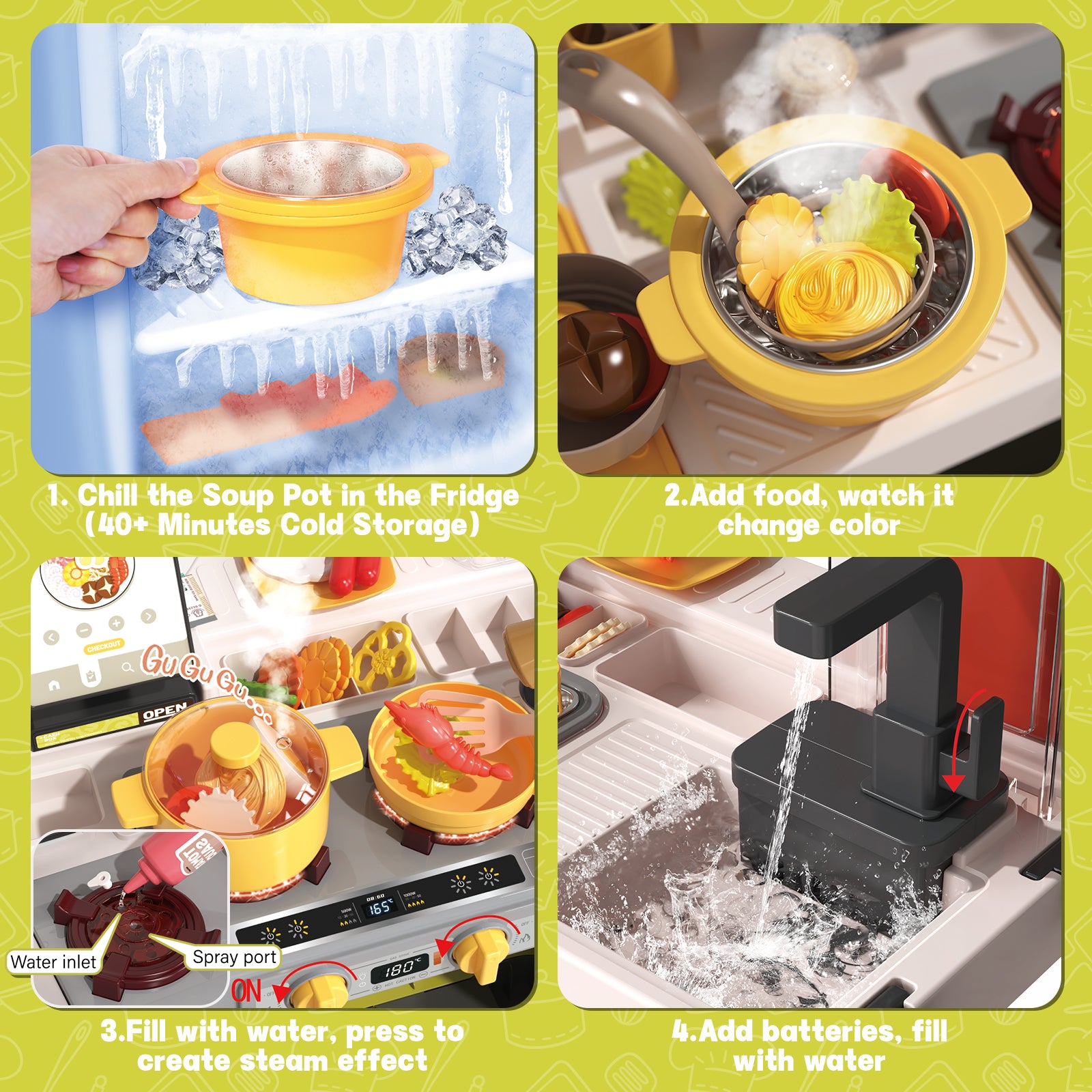Color-Changing Play Food: Watch food pieces magically change color when dipped in ice water, adding a fun sensory twist to playtime.