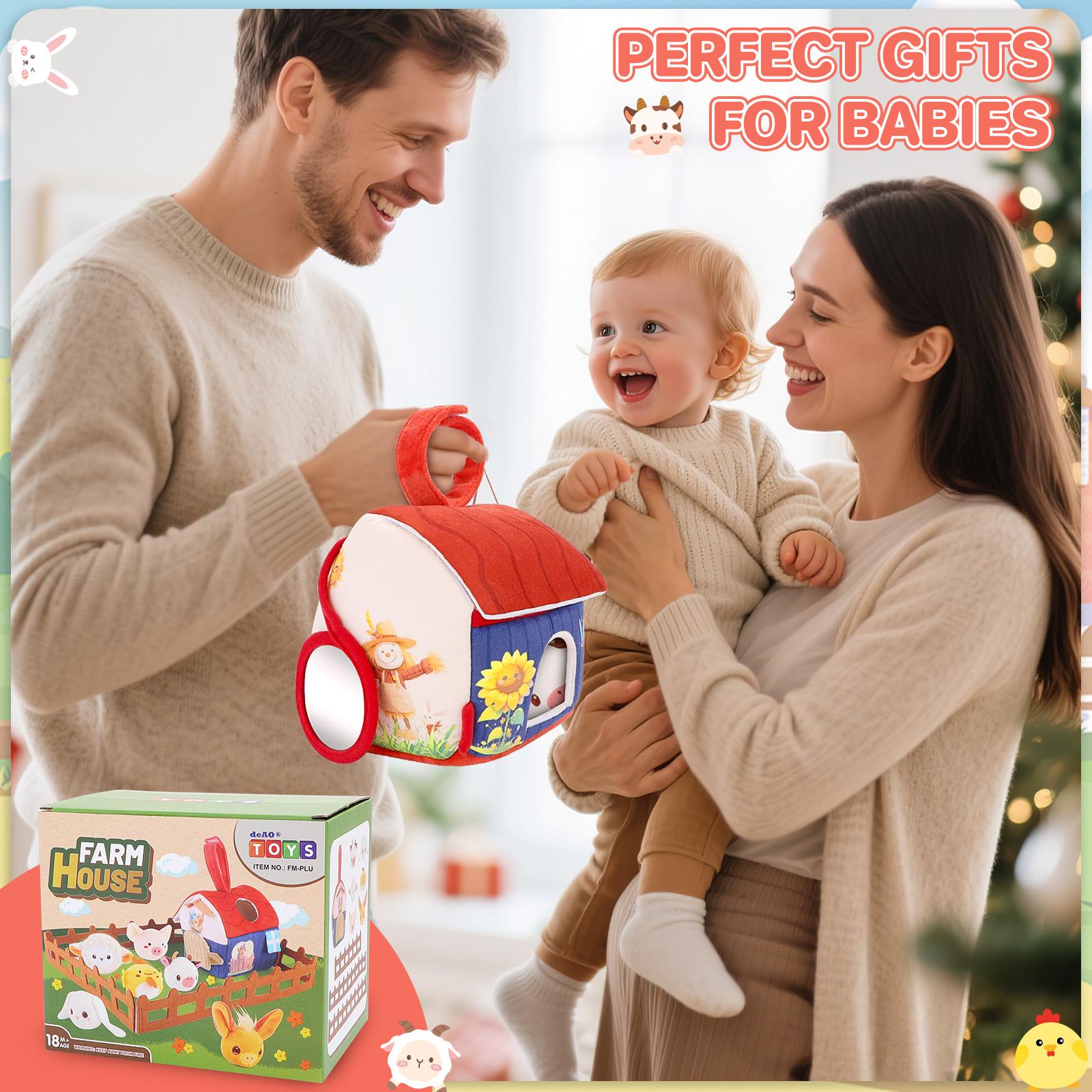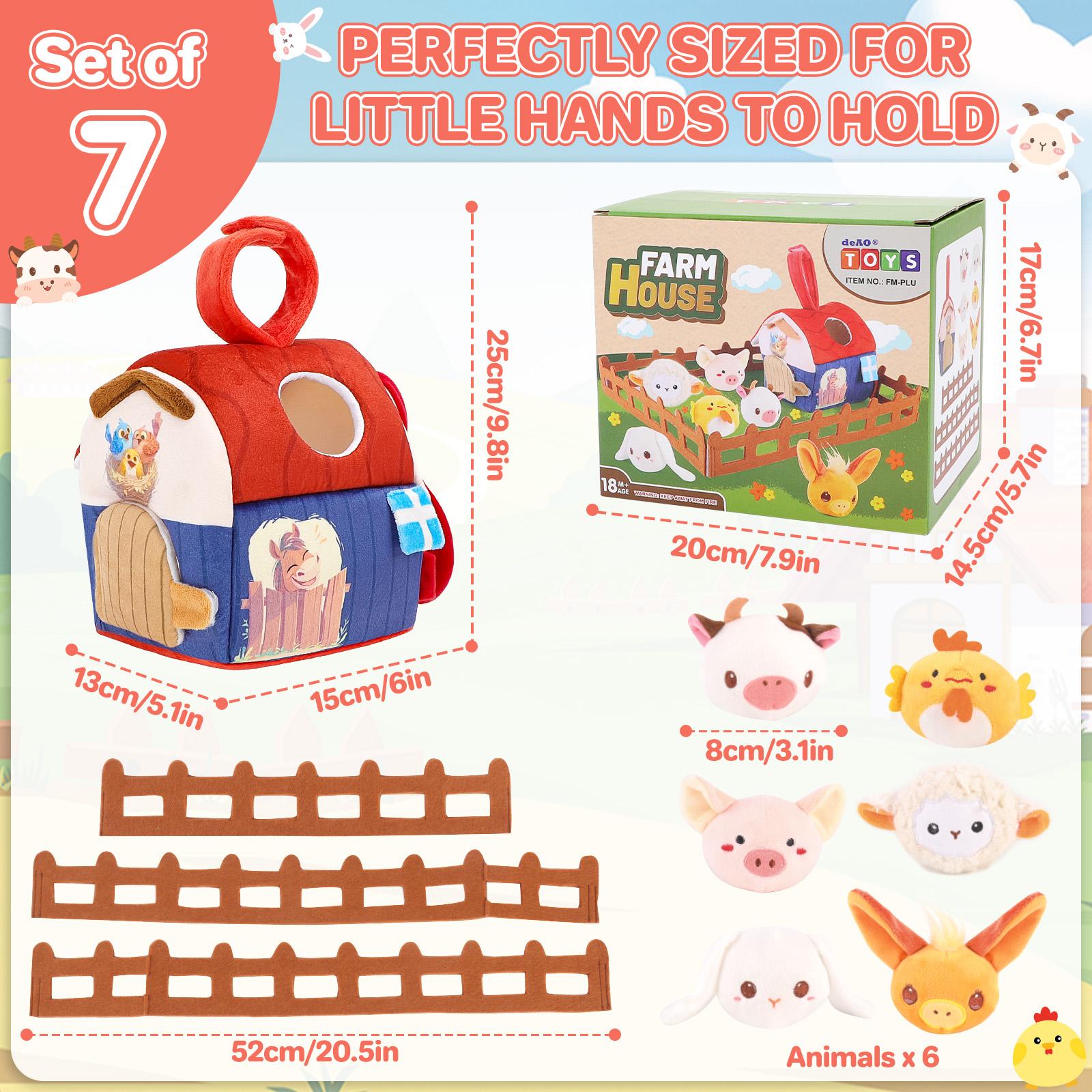 Treat your baby to the joy of discovery with this charming Plush Surprise Barn Toy! Specially designed for infants, this sensory playset comes with six soft and snuggly farm animal friends hidden inside a cozy fabric barn. ?your child will love exploring this Montessori-inspired set. Lightweight, portable, and perfect for playtime at home or on the go!
